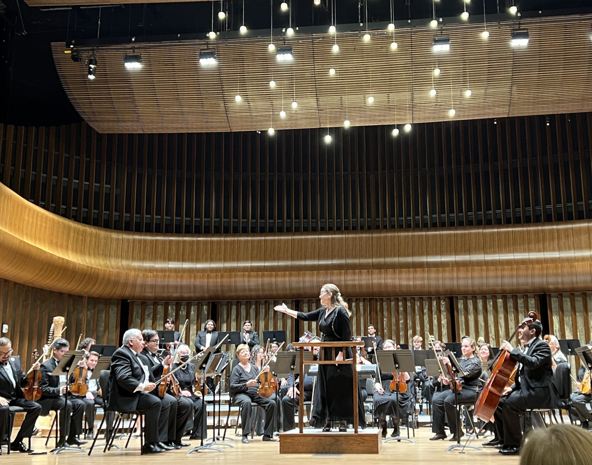 Dr. Colleen Ferguson conducts the Kingsville Symphony Orchestra during a performance at the Texas A&M University–Kingsville Performance Hall. The orchestra blends student musicians with working professionals from across South Texas | Courtesy Photo